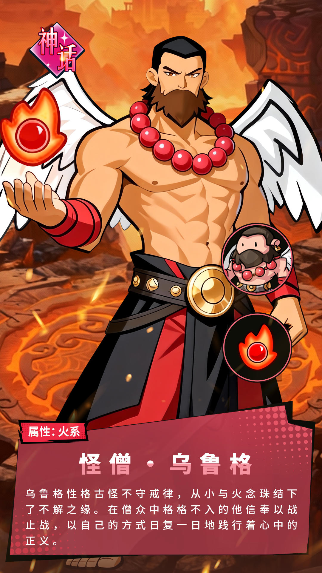 身为寺院的“异端”,乌鲁格从未理解经文中的慈悲为怀。他自幼佩戴的那串火念珠,总是在他人诵经时燃起不安分的烈焰。当同门冥想静修时,他在后山以火焰锤炼武技;当众人劝阻杀生时,他坚信唯有烧尽世间罪业,方得真正清净。