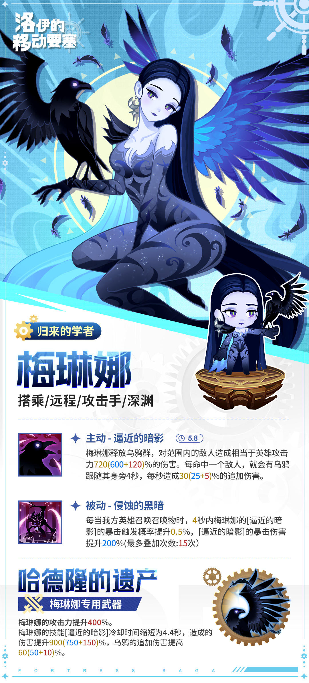 ※【概率提升召唤】开启后,传说英雄-梅琳娜将同步永久加入【常驻英雄召唤】和【英雄召唤券奖池】。