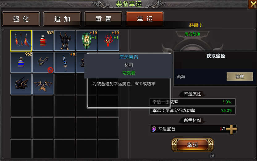 +7至+9需凭借灵魂宝石冲刺,50%基础成功率搭配幸运属性道具的25%加成,刺激又不失稳妥;+10至+15的终极强化,需组合三类宝石出击,可搭配合成幸运符提升10%成功率,或用合成保护符规避道具消失风险,高风险高回报的设定,让每一次点击都心跳加速。