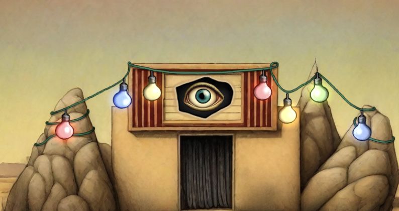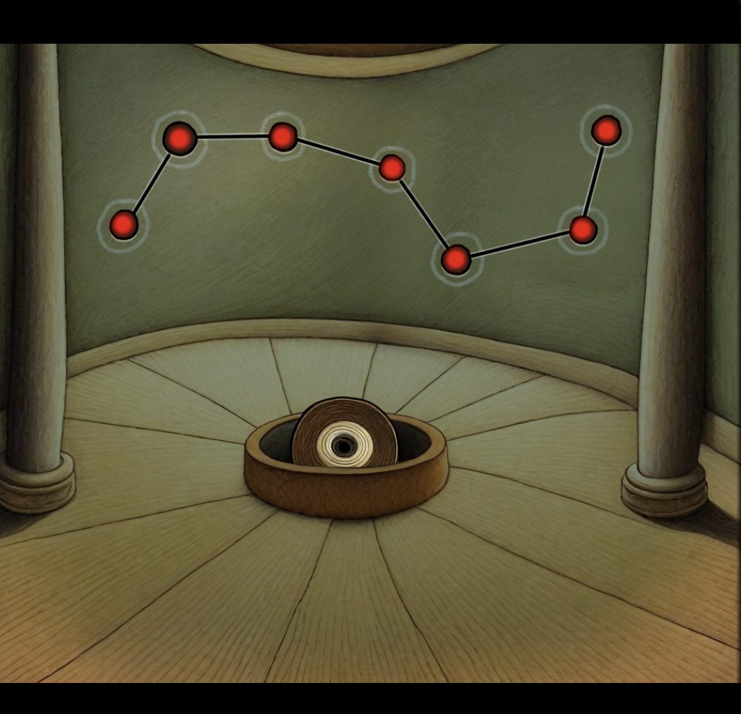 去三角塔把眼睛装上,密码在喷泉,开启时空转换器,把叶子丢进去,得到金叶子,可以去开门了,最后把唱片装上,进电影里小屋,过关!