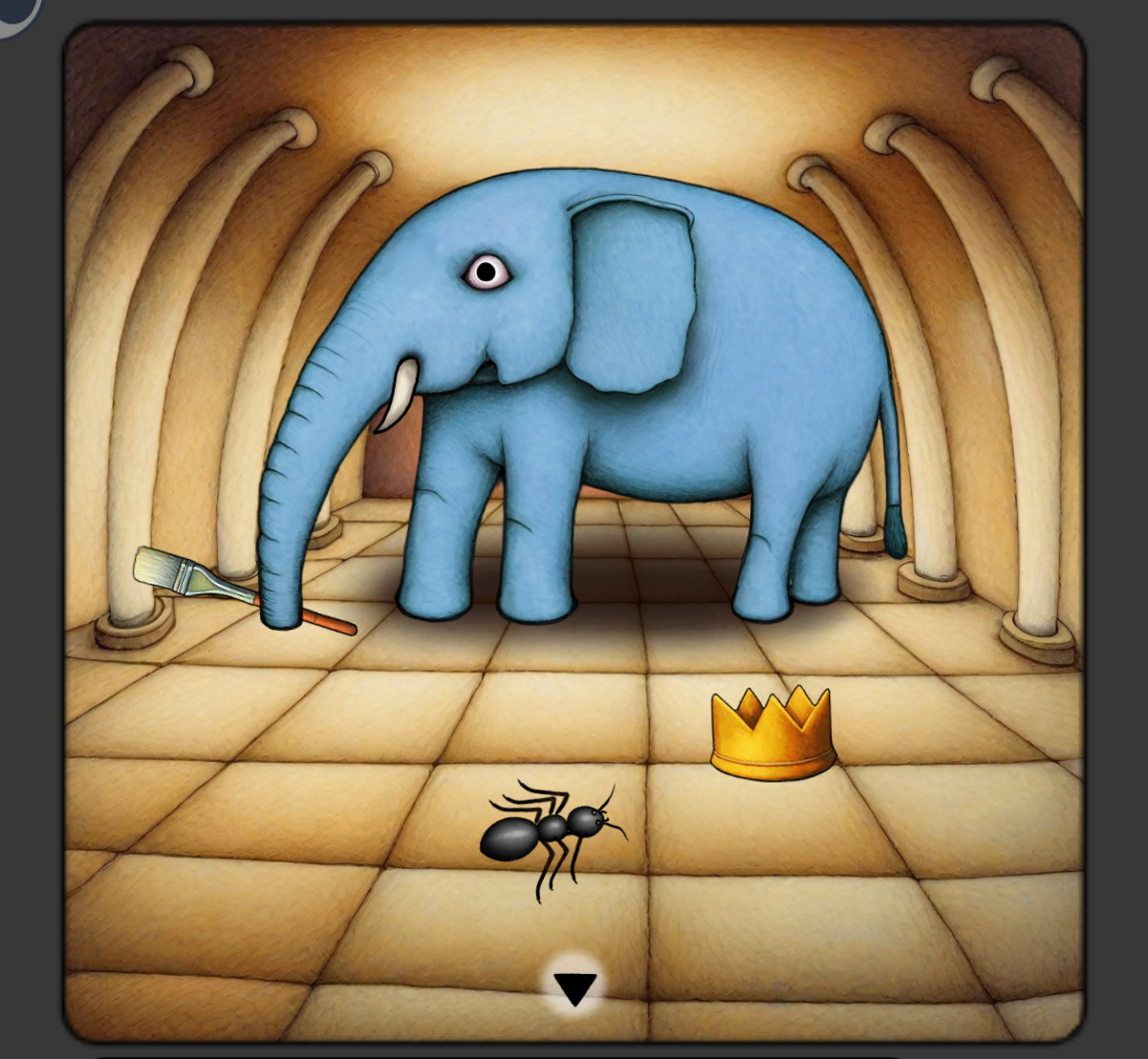 带着笔刷和橙子去找大象,获得蚂蚁和王冠