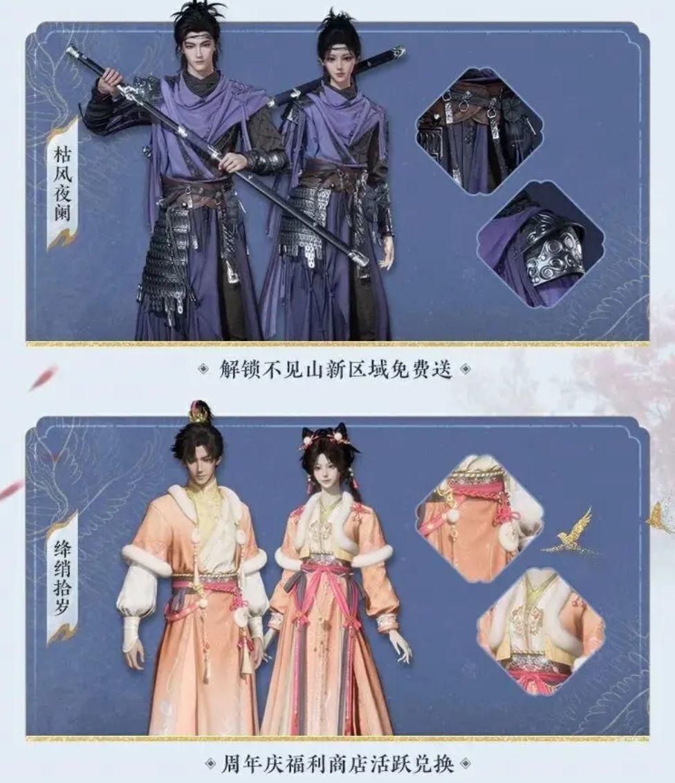当然免费衣服也更新5套了,除了墨山道是新区域解锁送,其他四套进商店需要兑换,又有的肝了