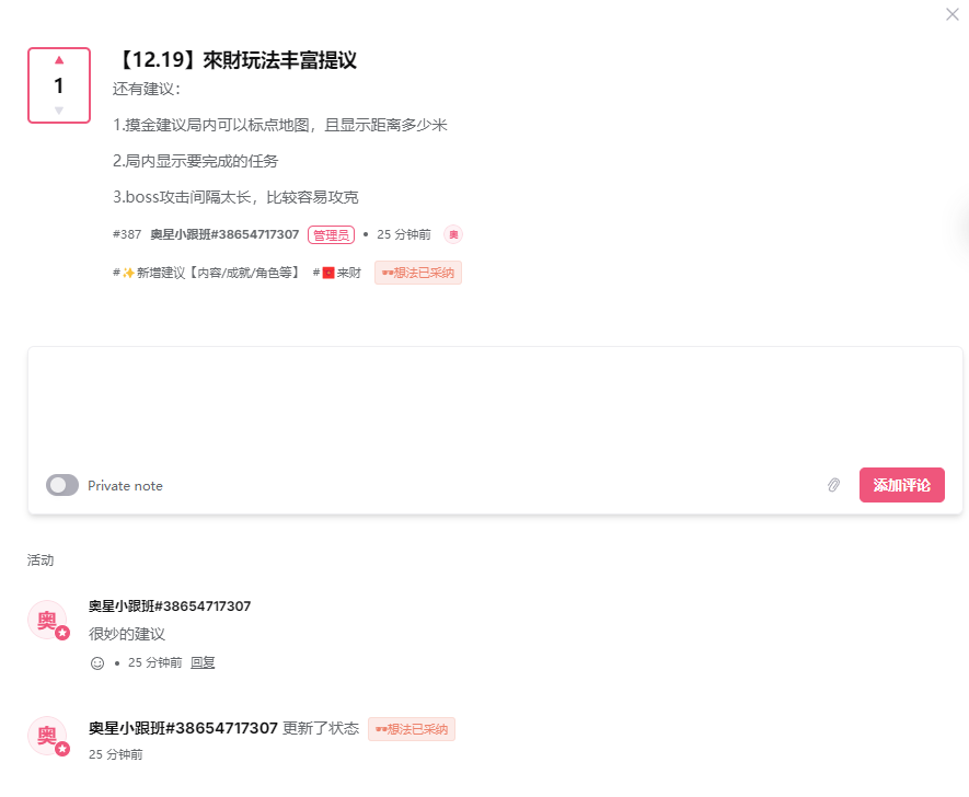 更多采纳的建议可以在下方【我在奥星当监工】网站中查看,本月偷包计划的点子分和偷包分将在月报中展示~
