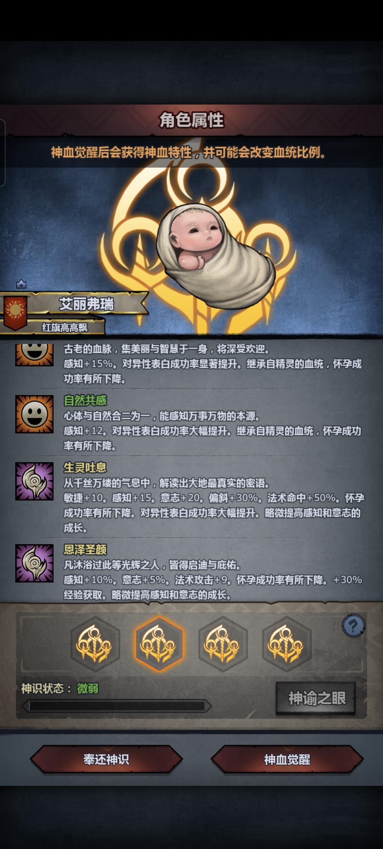 我的神子特性如上图,两种不同的培养路线我都用计算器算过了,感意体整体属性亏了5点左右,算上神特进场也不会亏10点以上(应该是,没仔细算过),性价比很应该是非常高的了