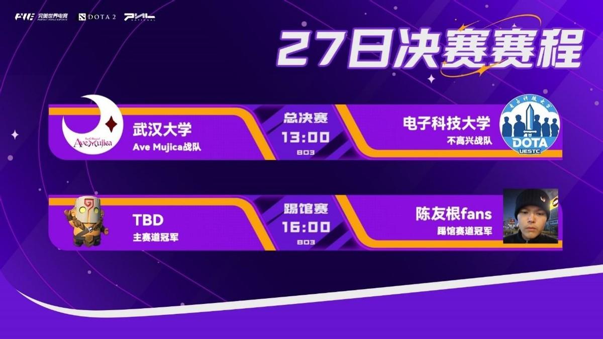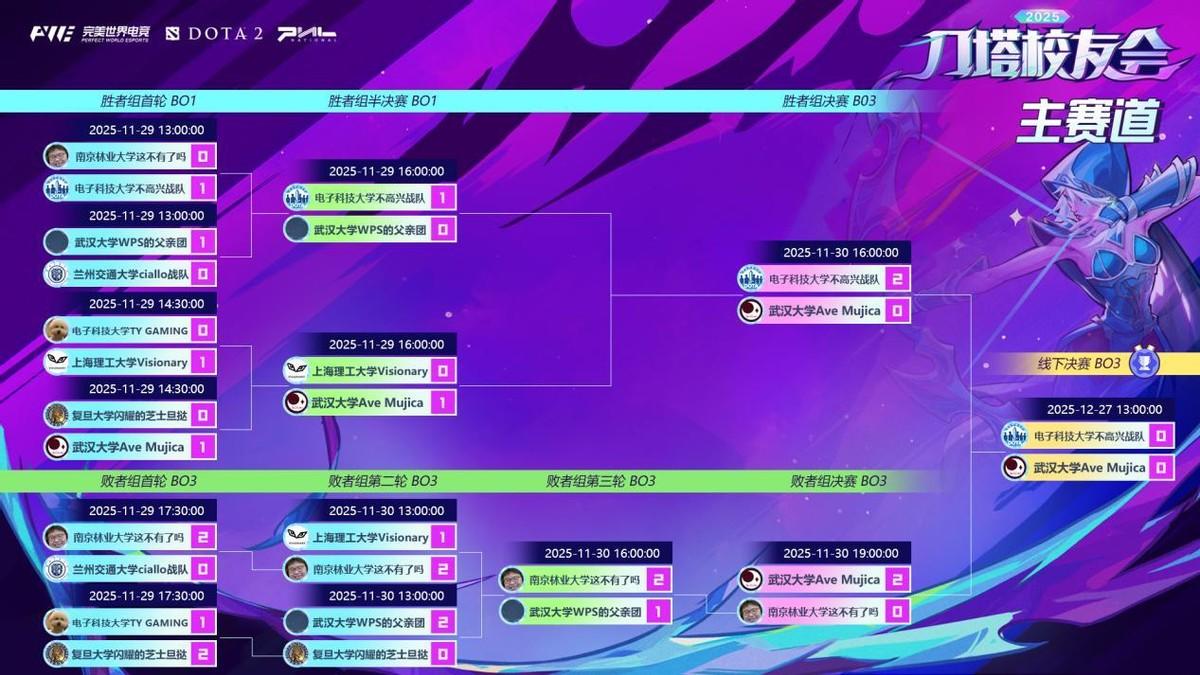 2025年刀塔校友会线下总决赛将于本周六在完美世界电竞中心进行,电子科技大学不高兴战队和武汉大学Ave Mujica的选手们将来到上海,争夺本次刀塔校友会主赛道的冠军;而踢馆赛道冠军陈有根fans也将以逸待劳,想主赛道冠军发起挑战。