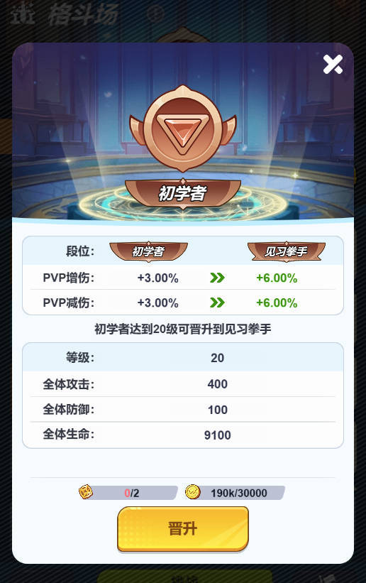 除了基础属性外,升级「段位」更能为队伍提供独有的「PVP增伤」属性,在所有的PVP玩法中均能生效,千万不要小看那百分比加成,往往在残局中就能发挥奇效!