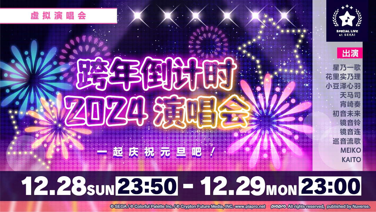 我们将于12/28(日)和12/29(一)举办「跨年倒计时2024 演唱会」。
