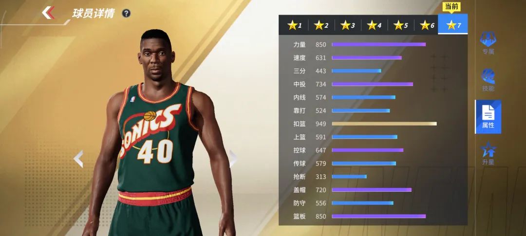 大前锋里,谁有坎普会扣篮!949点扣篮数值全游戏仅次于卡特,但相较于卡特,坎普还具备850的篮板与720的盖帽,篮下防守能力更优质!850力量无惧对抗,734的中投在进攻端还有多种选择,是天生错位单打的好手!