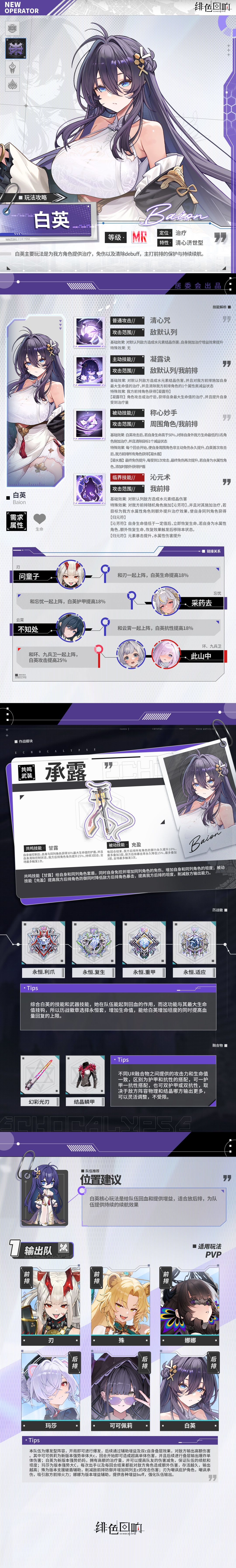 唤醒者们好呀!今天为大家带来全新清心济世型共鸣者「白英」的玩法攻略,内含技能解析、链接关系、作战模块和队伍推荐,一起来看看吧~