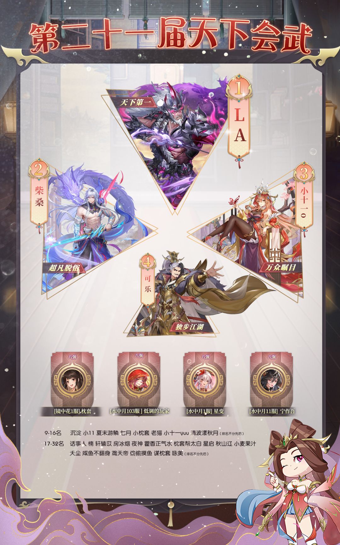 然后,依此由柴桑、小十一o、可乐分别夺得2-4名,汉昭烈帝也是在Tap会武登进入了前四。