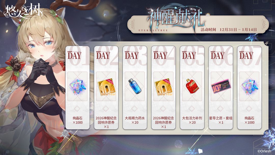 活动期间,探求者大人累计签到达到指定天数,即可在【神醒献礼】活动面板领取许愿套组、绚晶石等超值好礼,共计40连!