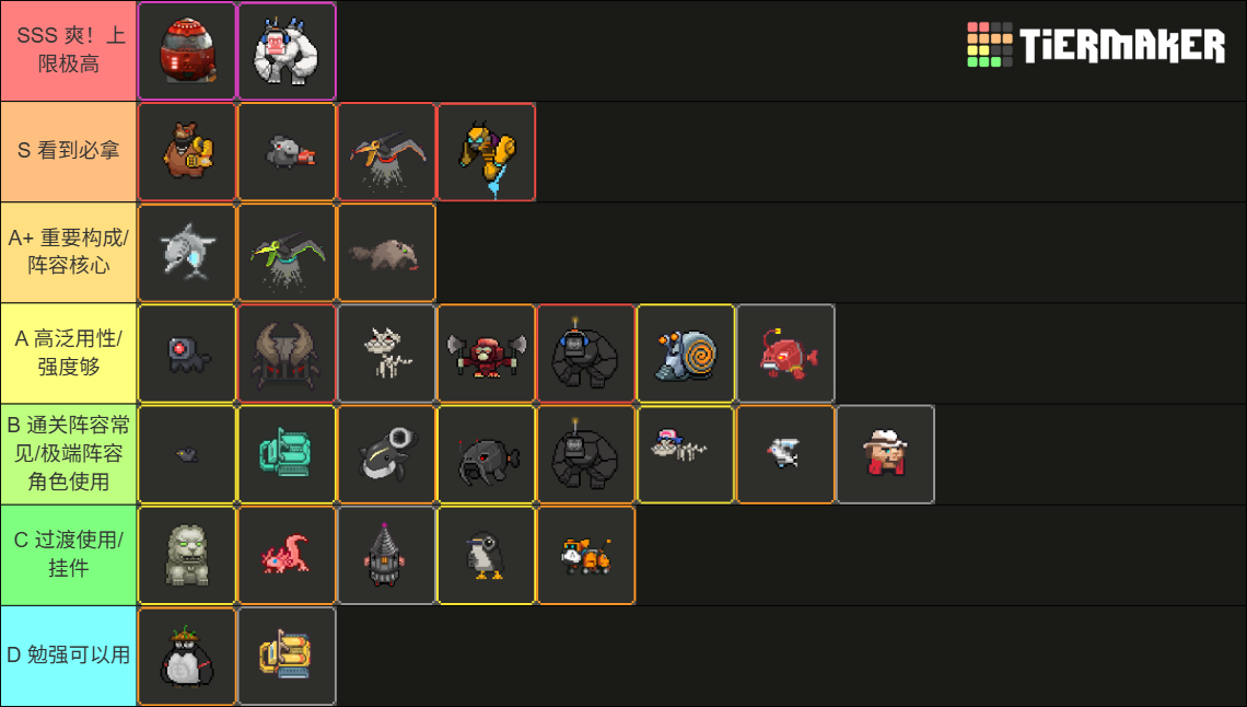 C:过度使用,当出现更好的塔时,可以随时被替换,很少出现在通关阵容中