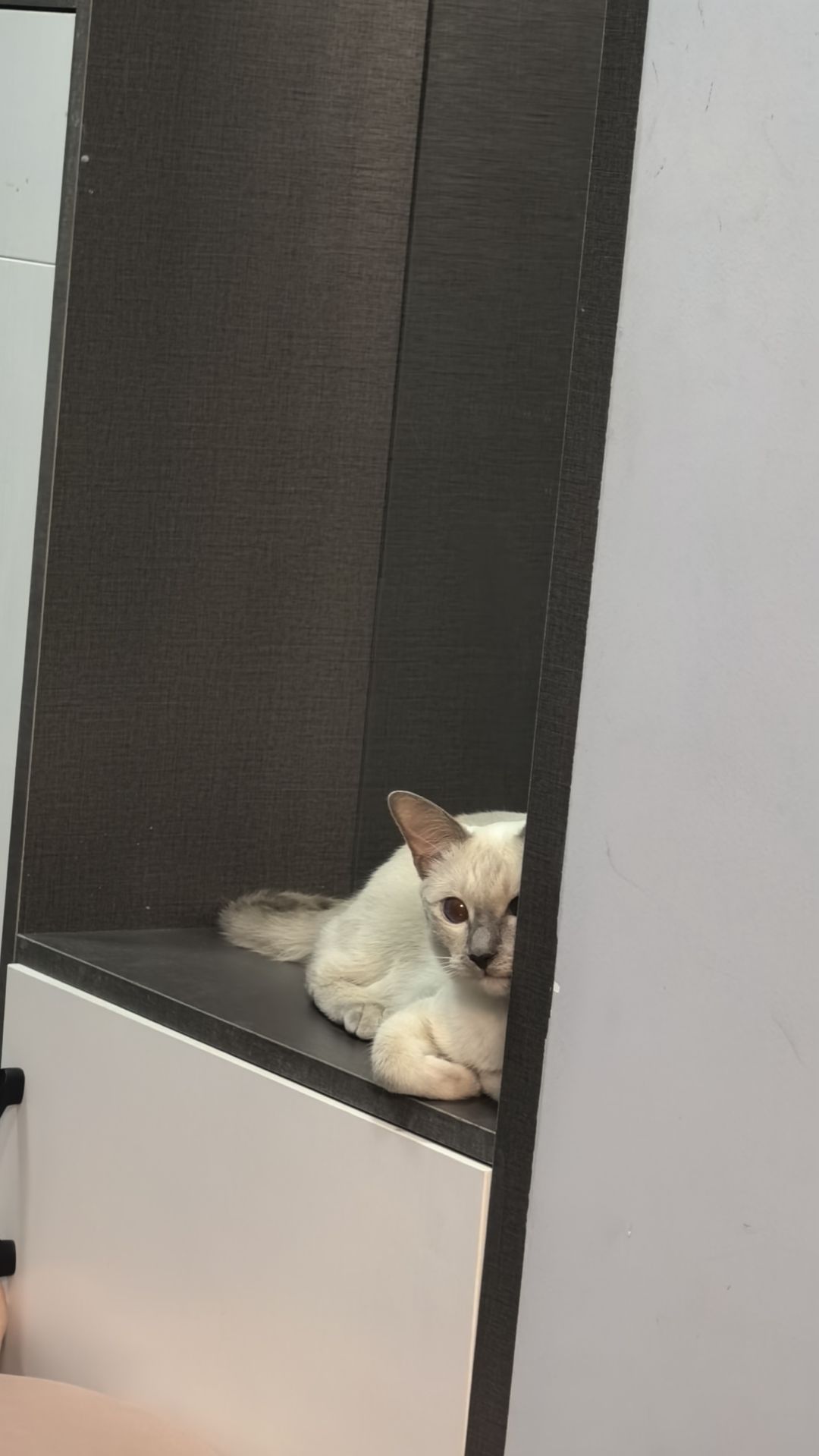喊他的名字,每次都会喵的一声有回应,但最多叫三次,他就会假装听不见把头侧倒一边。