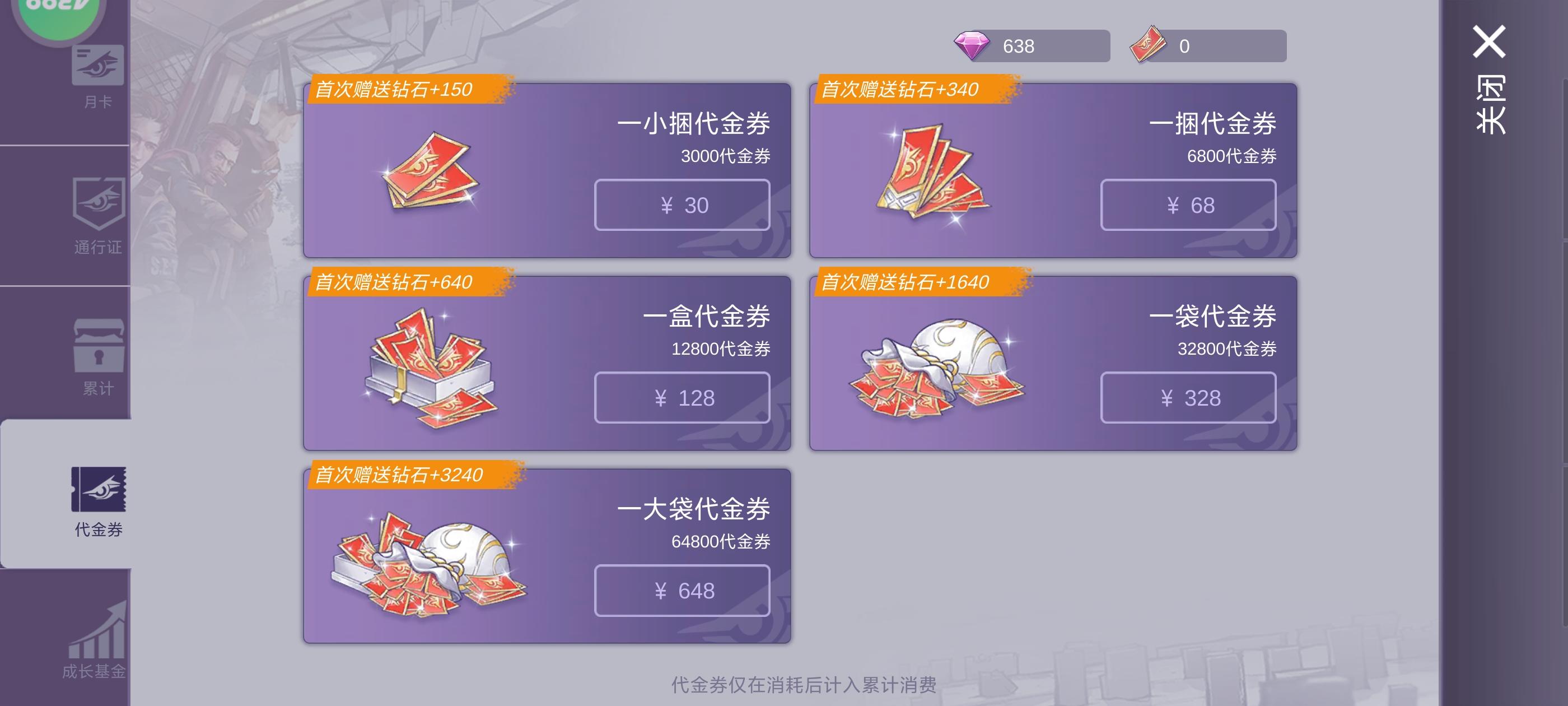代金券是可以直接当钱花的,买代金券是为了他附赠的钻石,每天钻石商店只买银箔和紫水晶就行。