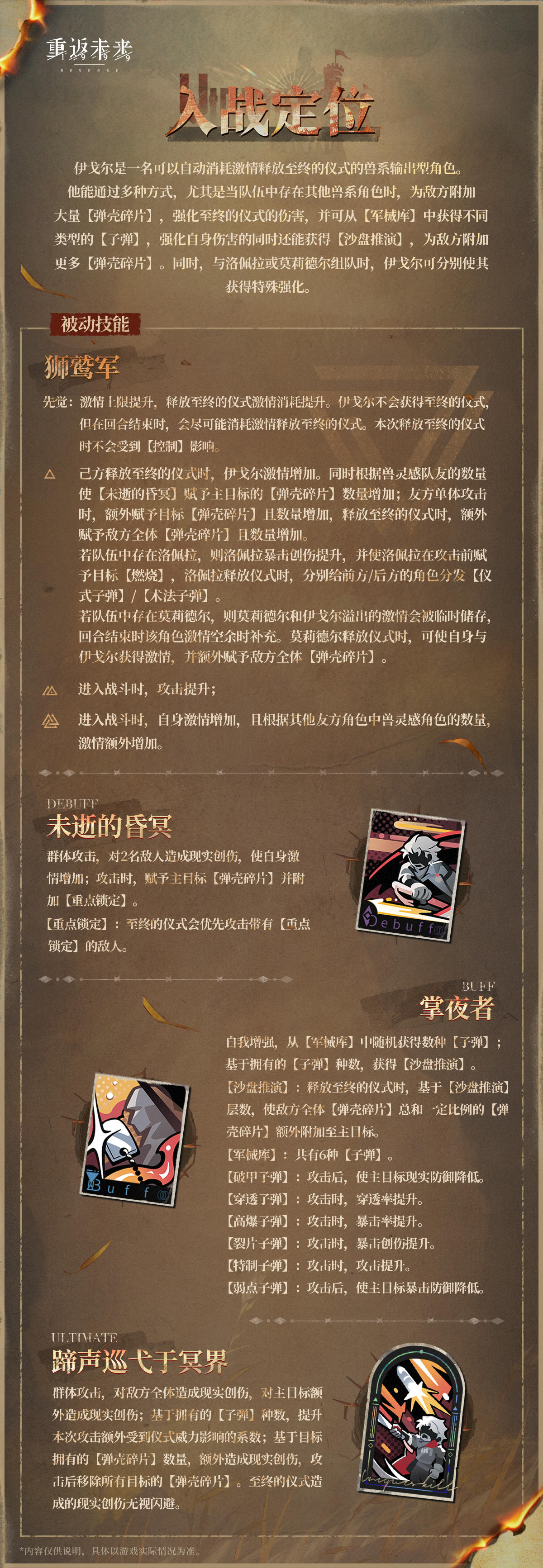 ⭕写在前面:“家人队”一家之主——将军伊戈尔强绑定洛佩拉和莫莉德尔,缺一不可。将军是子弹仪式c,依赖弹壳碎片和子弹增幅自身仪式;仪式自动释放,相当于仪式不占卡位和不消耗行动点了