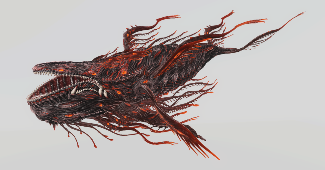 而在战斗技能中,鲲鲲也会根据自身的受击状态和血量有着不同的战斗表现,比如在技能【苦痛】期间,若尸鲲遭受攻击,则会对目标发射大量的痛魔弹,每次受到攻击都会延长此技能的持续时间;释放技能【鱼群】时,则会根据生命值不同状态,生成数量不等的魔化小鱼发起攻击。