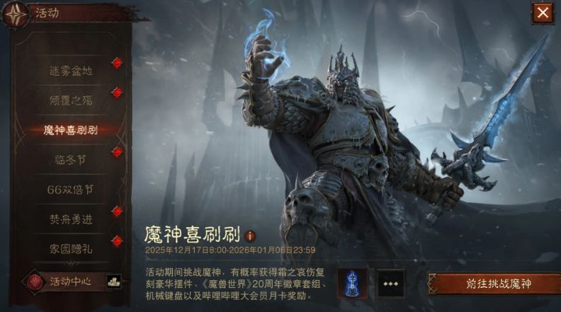 《暗黑破坏神:不朽》与《魔兽世界》联动再度开启,超多联动福利同步上线,瞬间点燃玩家热情。全新“魔神喜刷刷”活动同步开启,玩家完成魔神挑战,就能赢取丰厚魔兽主题周边奖励,福利诚意满满。