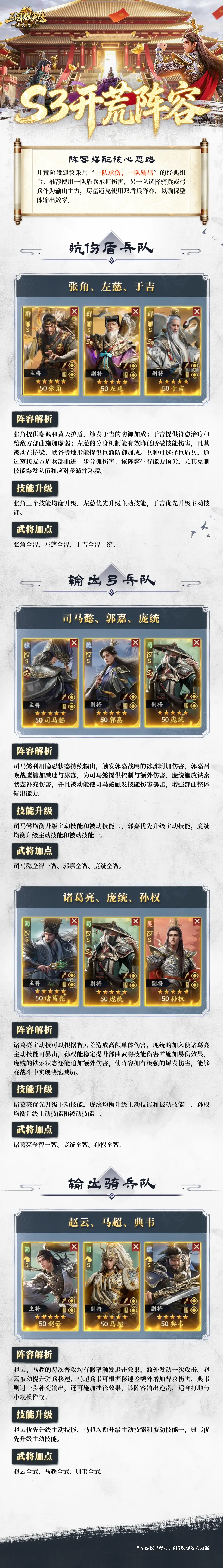 为大家整理了S3赛季的开荒阵容,希望能助各位主公在赛季初期便奠定胜势!