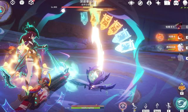 那么,知道机制后,咱们其实就有多种处理方式了,你可以用纳塔角色,玛薇卡、恰斯卡等,利用夜魂值特性破盾,你也可以用非纳塔角色,比如丝柯克、草久行等等,利用高频输出破盾。所以,核心点就在于平时,可以多练一些4星角色,用于破机制就好。