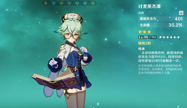 再打个比方,我抽了个杜林去给基尼奇打辅助,杜林可以减草抗,可以挂火,虽然挂火挺高频的,但是我嫌弃只有20%减抗,不如带钟离的时候。