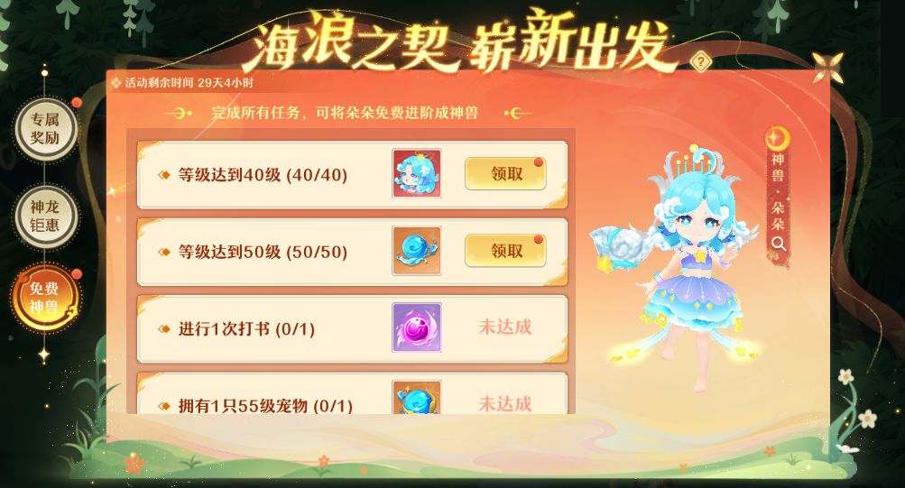 完成任务即可免费获得进阶道具,让朵朵进阶,成为【神兽·朵朵】!