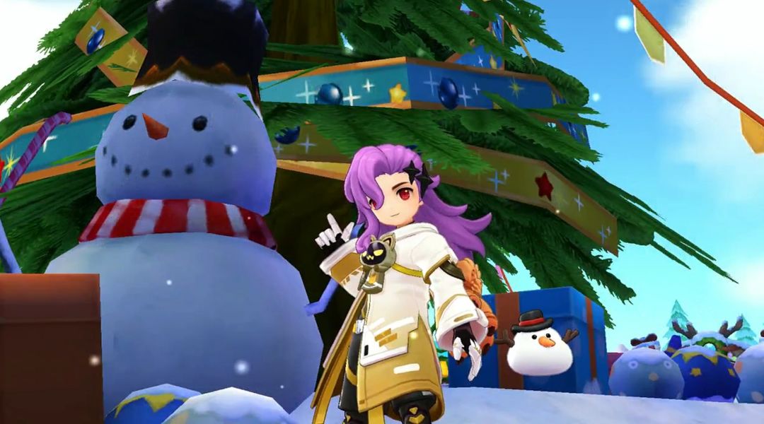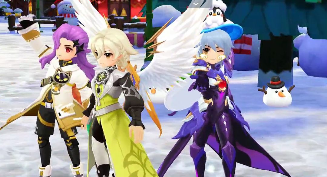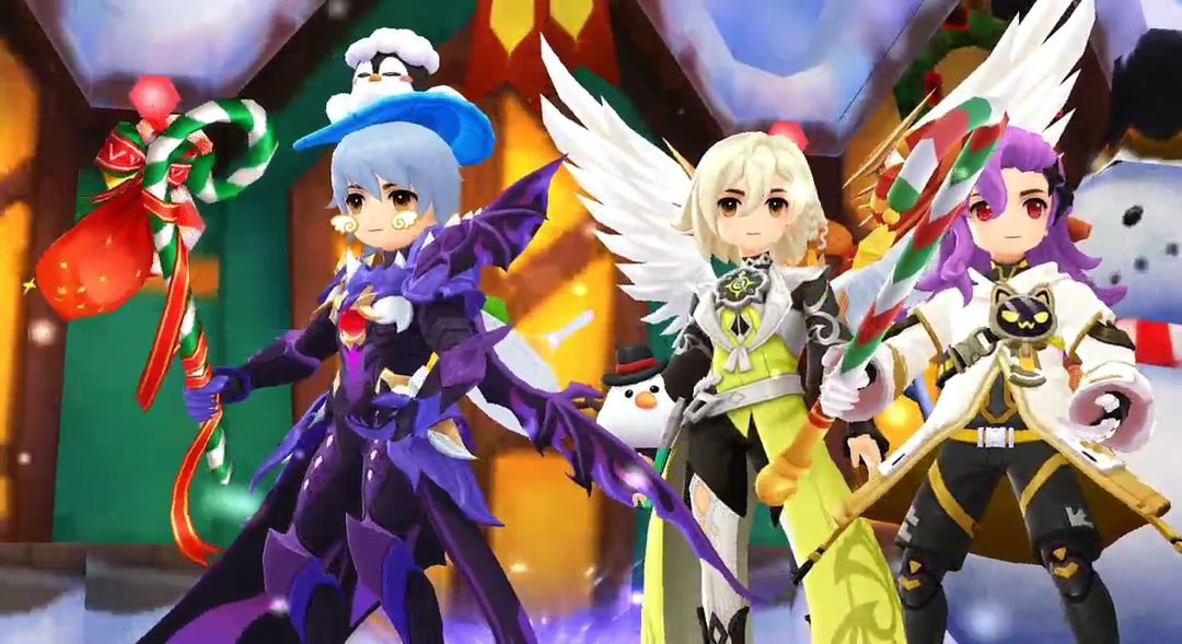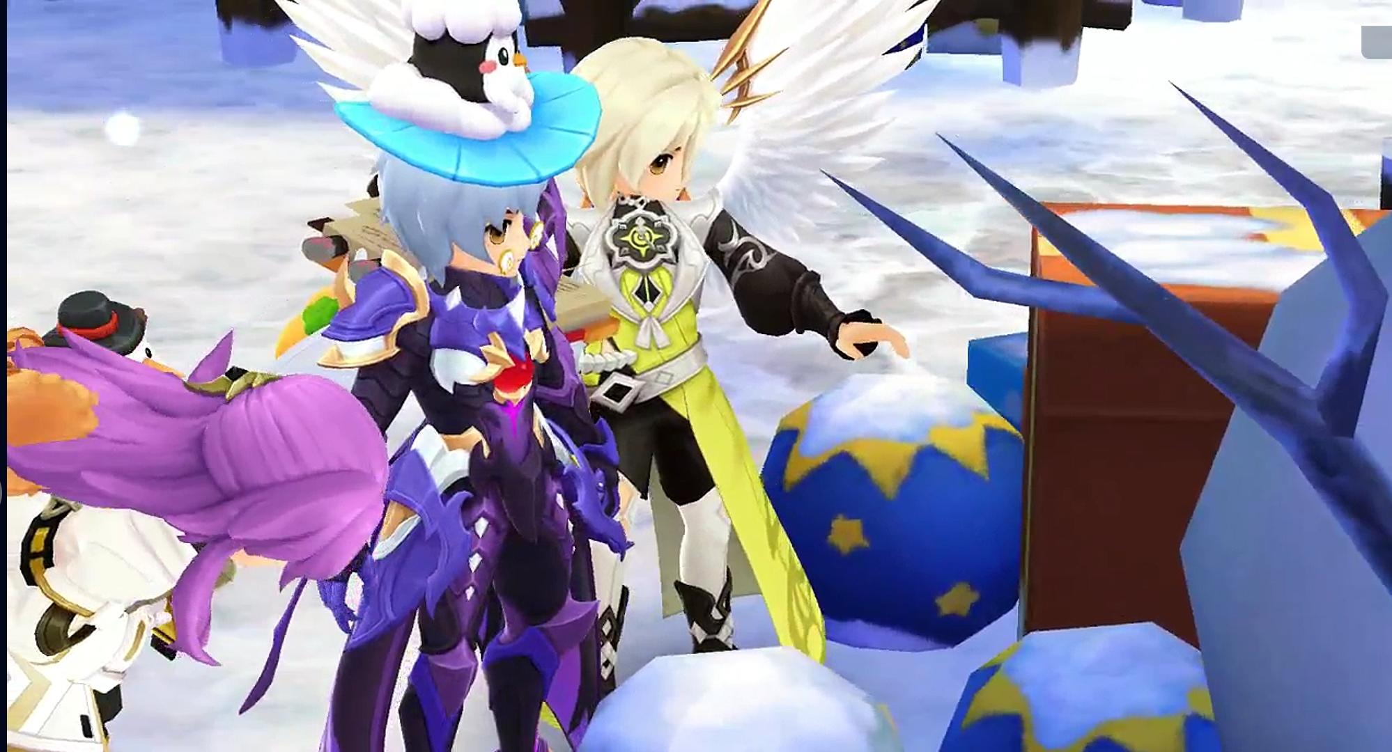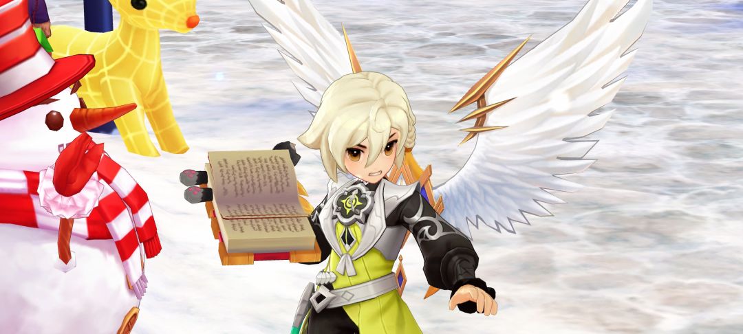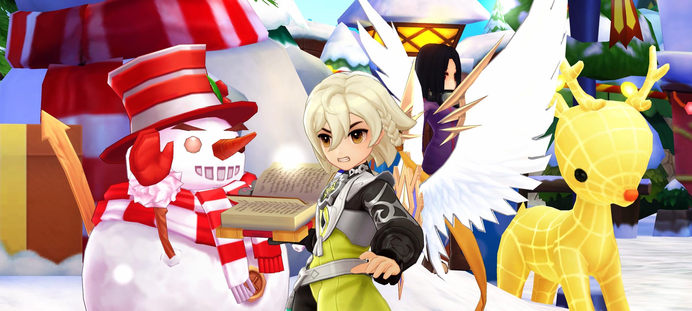 冒险者<我爱Ro>停下脚步,指向前方。在一座被冰霜覆盖的小广场中央,几只被铃铛唤醒的魔物正围着一棵小型的圣诞树乱撞,树上的彩灯摇摇欲坠。