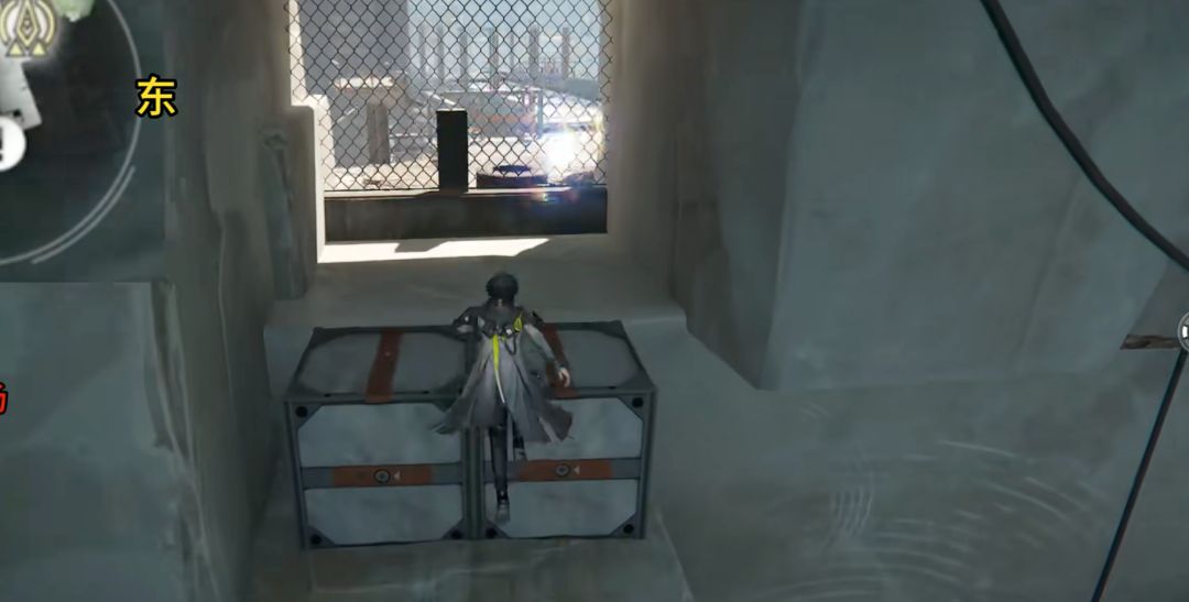 刚开始进来的时候需要先操作叉车把箱子抬起来,然后把墙炸开了再进去,一路上遇到的叉车都抬起来,然后看图示找到醚质点位