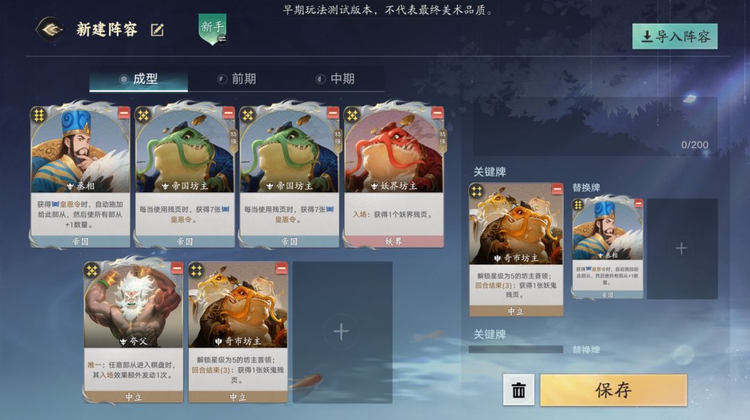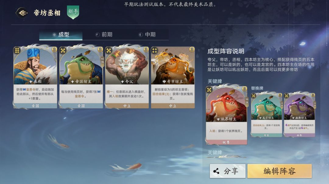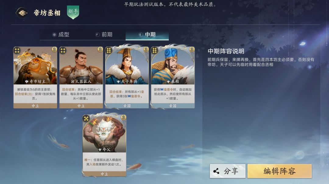 帝国丞相作为一个非常出色的倍率卡,拥有足足1:7的皇恩收益率,只是因为机制原因导致在帝国难以使用,只能和天子配合使用,本篇阵容则带丞相离开帝国,通过坊主们 的强大经济能力,完美发挥丞相的超高倍率
