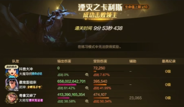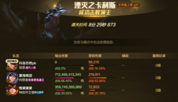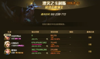 他们这队的成绩为8分29秒,只是笔者没想明白团长为啥要穿钢魂套,从承伤来看,团长整把游戏也就挨了1~2下攻击,说明操作手的操作肯定是顶级的,再加上四姨穿戴的镇魂精炼,可以无限刷新65技能,这个技能打中boss后,不仅四姨自己,队伍的其他成员在5秒内都不会受到土龙的任何攻击伤害,生存能力已经非常强了,搭配得很不合理