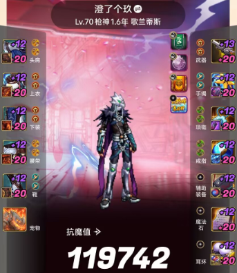 剑魔的增幅是差2件就全身12,不是很低,装备穿戴的黑洞套+精炼首饰,生存与续航都是非常不错