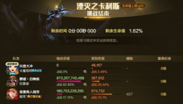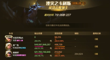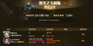 这俩人在一开局爆发就非常高,仅不到30秒的时间就将土龙血量压到了15万,后面鬼泣由于缺少生存能力,在土龙还剩1.3万血的时候失误倒下了,本以为机械的输出会落后鬼泣很多,但实际上在鬼泣失误之前,两者的伤害差距都不是很大,最后机械独自成功击杀土龙,成绩为7分06秒