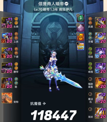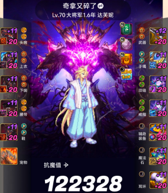 魔道的打造相比刃影就差了不少,增幅来到了全身11武器12,还穿戴了本命甲,这样的情况下,与镇魂刃影相比伤害差距会非常大,可以看出魔道很看重自己的生存能力