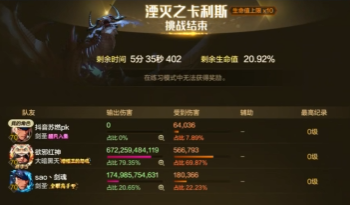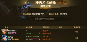 这位玩家虽然没能成功斩龙,但是也快把时间打满了,5倍血量的土龙还剩29.18%的血量,整场比赛可以看出龙女的操作非常不错,45技能刷的也很给力,打出了自己的风采