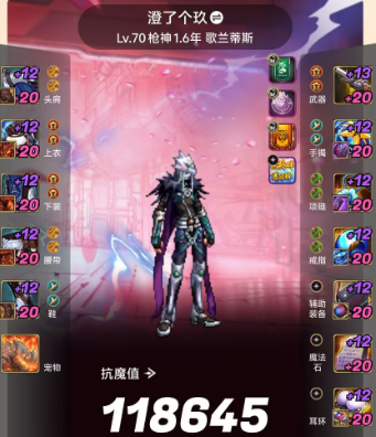 这个账号打造挺高,武器13全身12,但是70b装备的进度比较差,相比其他同打造选手低了不少技攻,但是瑕不掩瑜,高超的操作完全可以弥补伤害上的不足