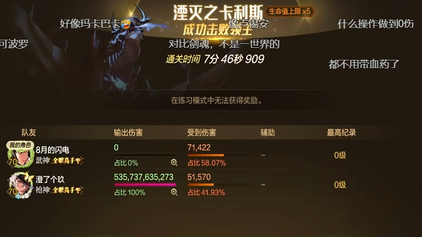 反观鬼泣的比赛表现就非常不错了,作为当前版本的辅助职业门面担当,鬼泣作为辅助职业其输出可以稳居主c职业T1行列,而且今晚的鬼泣选手中的“粽粽籽”,是目前全服鬼泣打造最高的一位,增幅进度来到了全身13,在比赛时运气不佳的情况下,还是打出了5分59的成绩