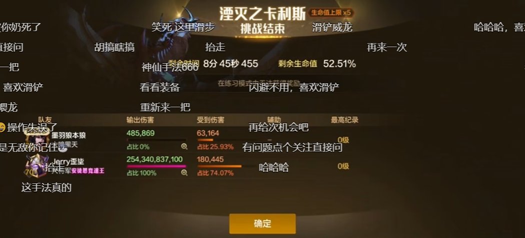 除了弹药的有趣表现,墨羽狼直播间今晚的一位四姨选手,也创造了本次比赛的奇迹,创下了比赛中通关5倍血量土龙的最低纪录