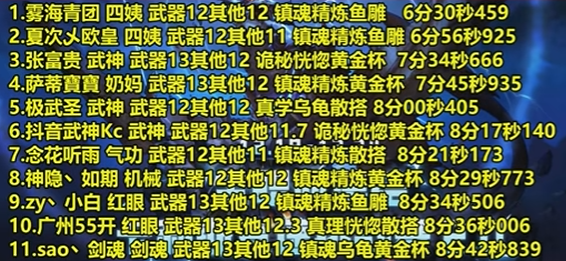 像今天的比赛中有位全身11的修罗,开局连刷17个45,他的前中期成绩比其他全身12的修罗都要快,可惜的是后续乏力,很期待明天的比赛中是否有低打造修罗逆袭成功呢
