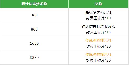 封灵玉碎片梦梦就不多说了,可以用来兑换自己喜欢的换装。传说虎符精元——提升当前版本热门道具虎符神兵值的重要材料,非常的有诱惑力呢。