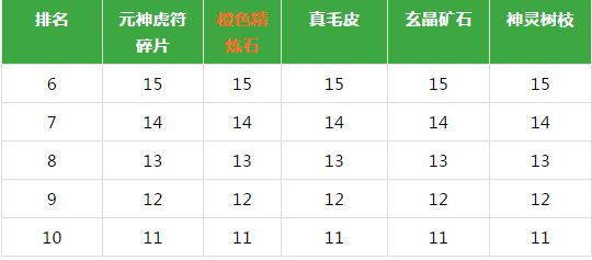 以下为不同排名的军团奖励物品的数量分布: