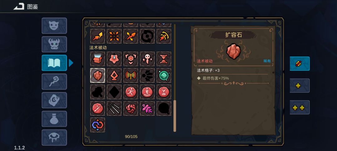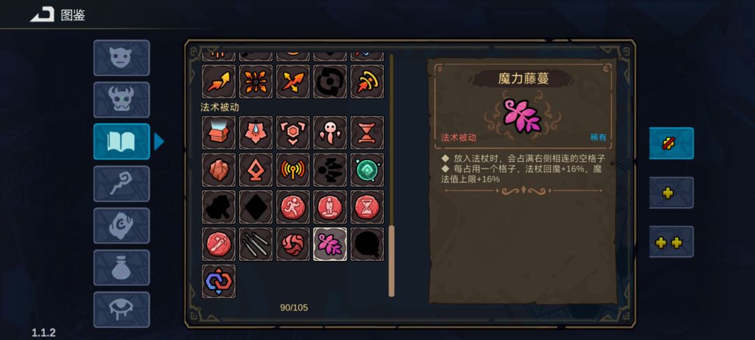 再通过骑士头盔(受到的无差别伤害降至1%)降低啃大瓜的伤害,接着再整一个奥术屏障(消耗魔力抗伤害)然后给上魔力藤蔓(向右侧格子延伸每占一格加魔力恢复和魔力上限)和扩容石(增加格子)基本打遍天下无敌手了而且还能兼顾生存站着不动都不会被打死。