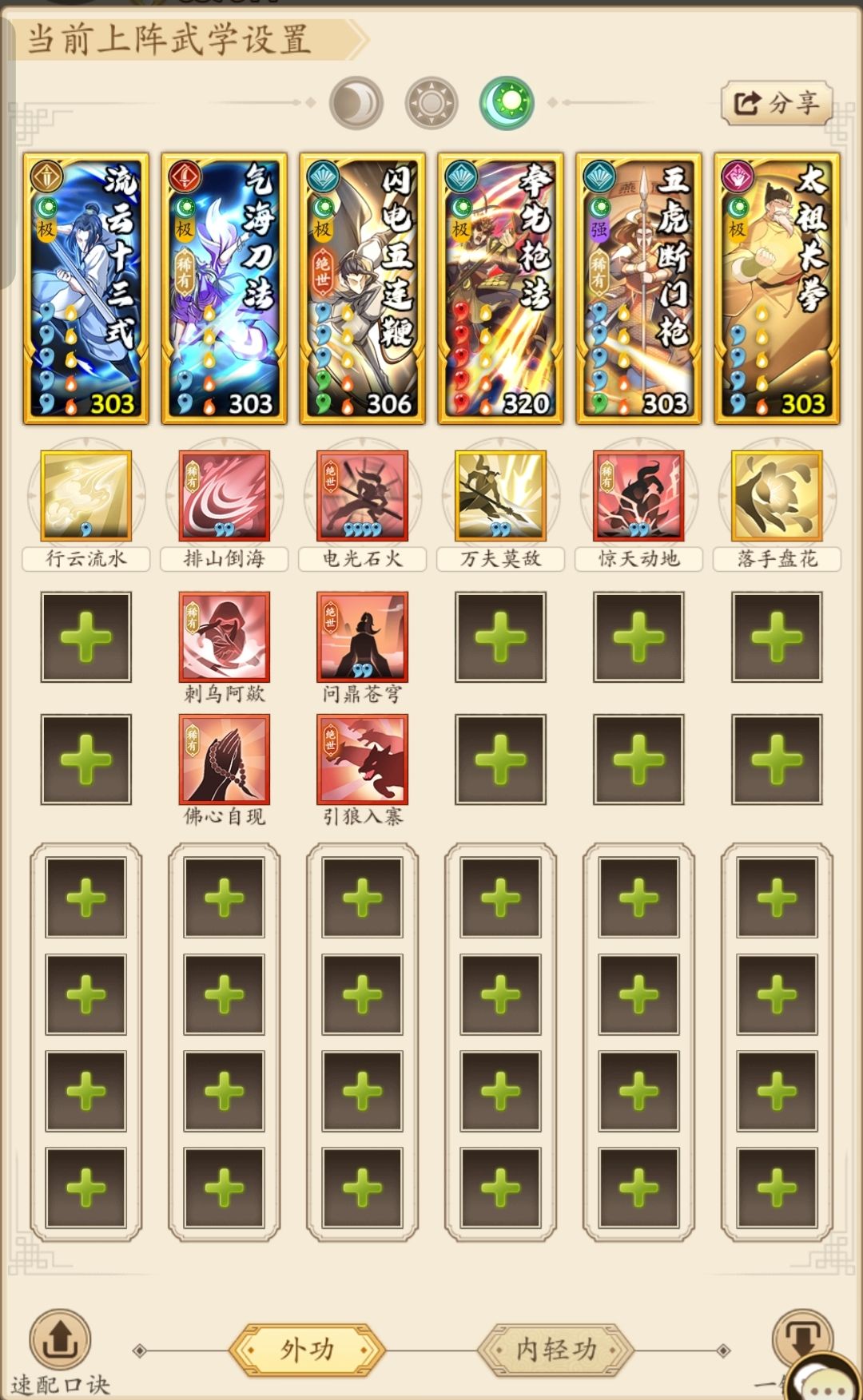 (不上招式是为了不祸害新玩家 玩过两三个月的玩家自然知道要上什么)