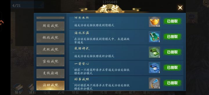 分两关,第一关在不点燃火把的情况下接近叛军一个不留,全灭过关,第二关目标是发现两只瑞兽清理场内猎物过关,良心活动关