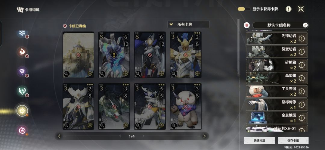 角色带千咲,卡牌携带情况见图四图五,其中有可更改卡牌