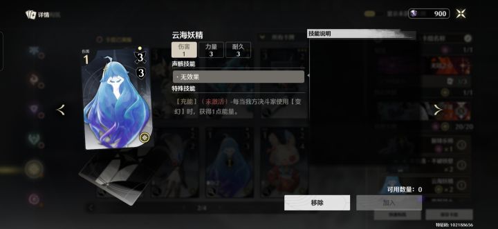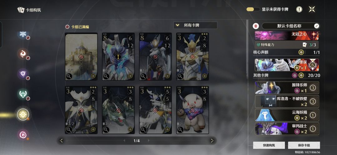 一句话总结:这套卡组的核心是利用云海妖精的特殊技能【充能】的特性以及审判战士的特殊技能【万变】的特性无限叠加刷能量