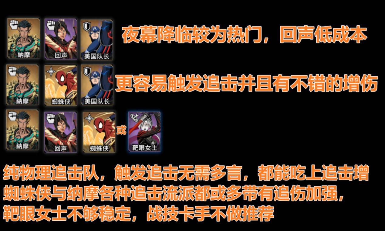 高些的成本就是将回声替换成蜘蛛侠,来完成三星英雄阵容,更好让触发追击效果。