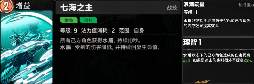 解锁灵魂之旅【理智1】水盾状态下的角色伤害提高25%,10秒的增伤已经赛过很多增益型角色,追击伤害能到50%的增伤,所以追击队吃收益是最狠的,纳摩也吃。