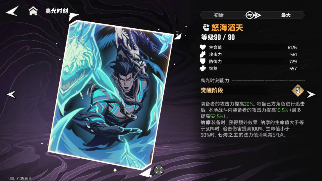 61级解锁天赋【复仇之子】释放终极技后,已方角色的追击伤害提高50%持续15秒,可以计算一下,加上水盾后,追击流派能吃到的伤害增益来到150%。