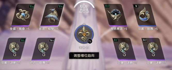 4. 最后4个格子可以随意搭配决断和鼓舞,要看你的面板能不能冲到120%的技能威力上限,能达到就最好。