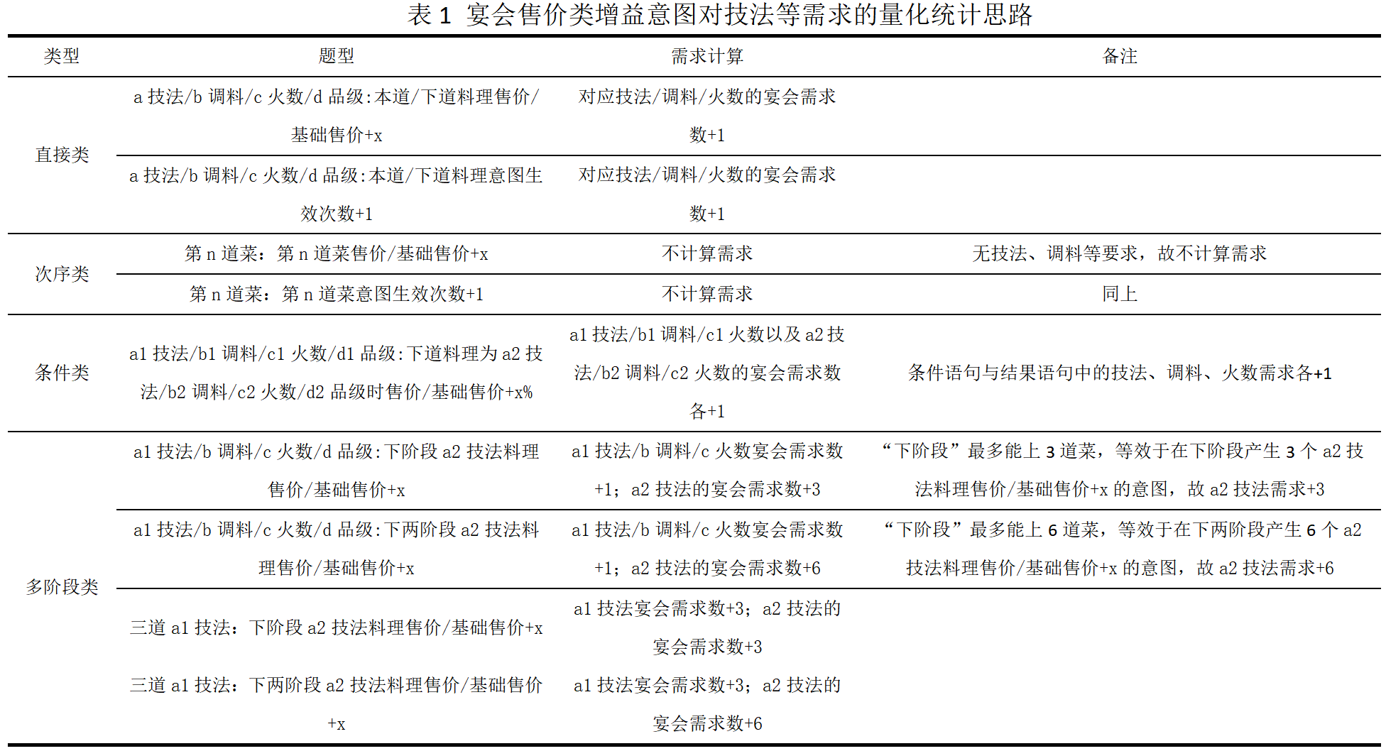 本文分别先计算了售价增益类、饱食增益类意图对技法的需求(分别见图1、图2),然后再将两者加总得到宴会对技法的总需求。