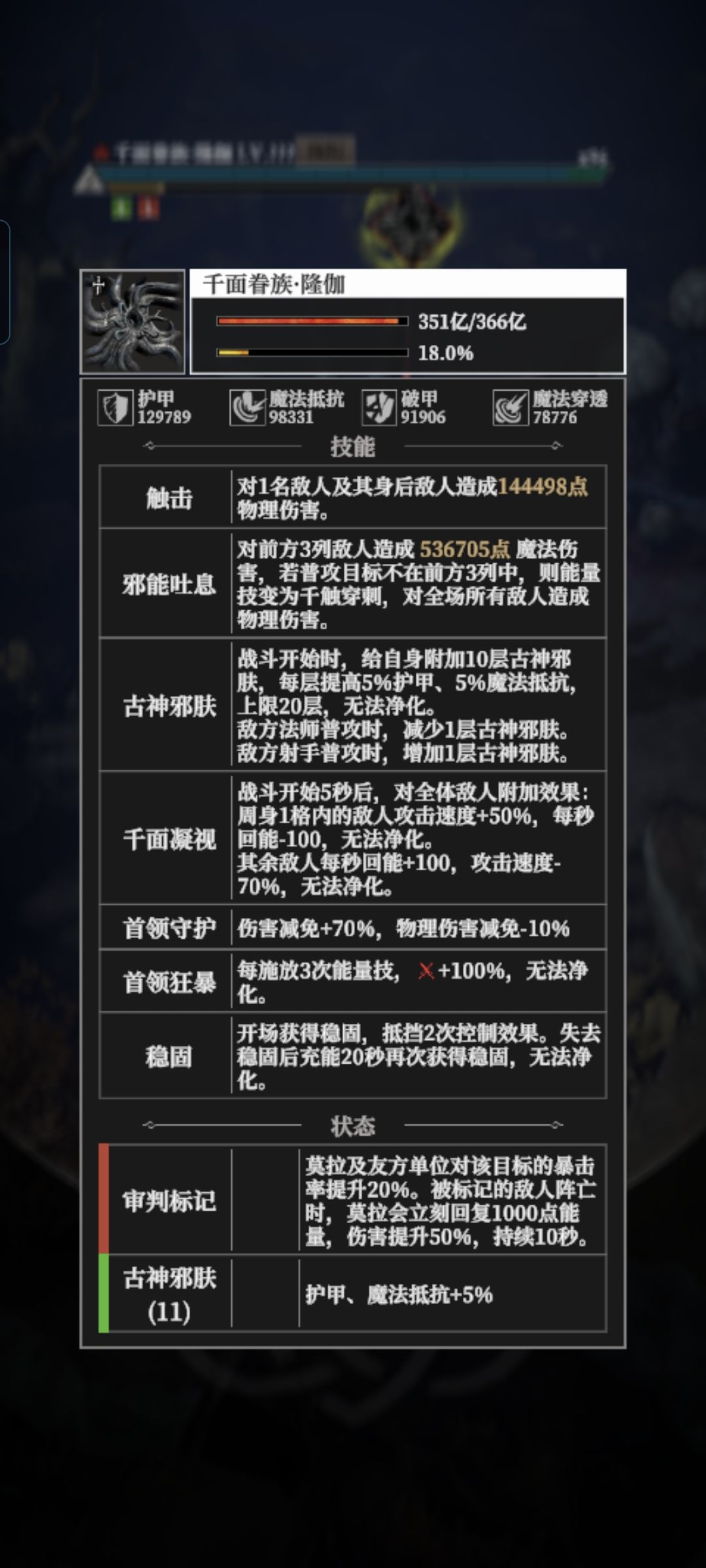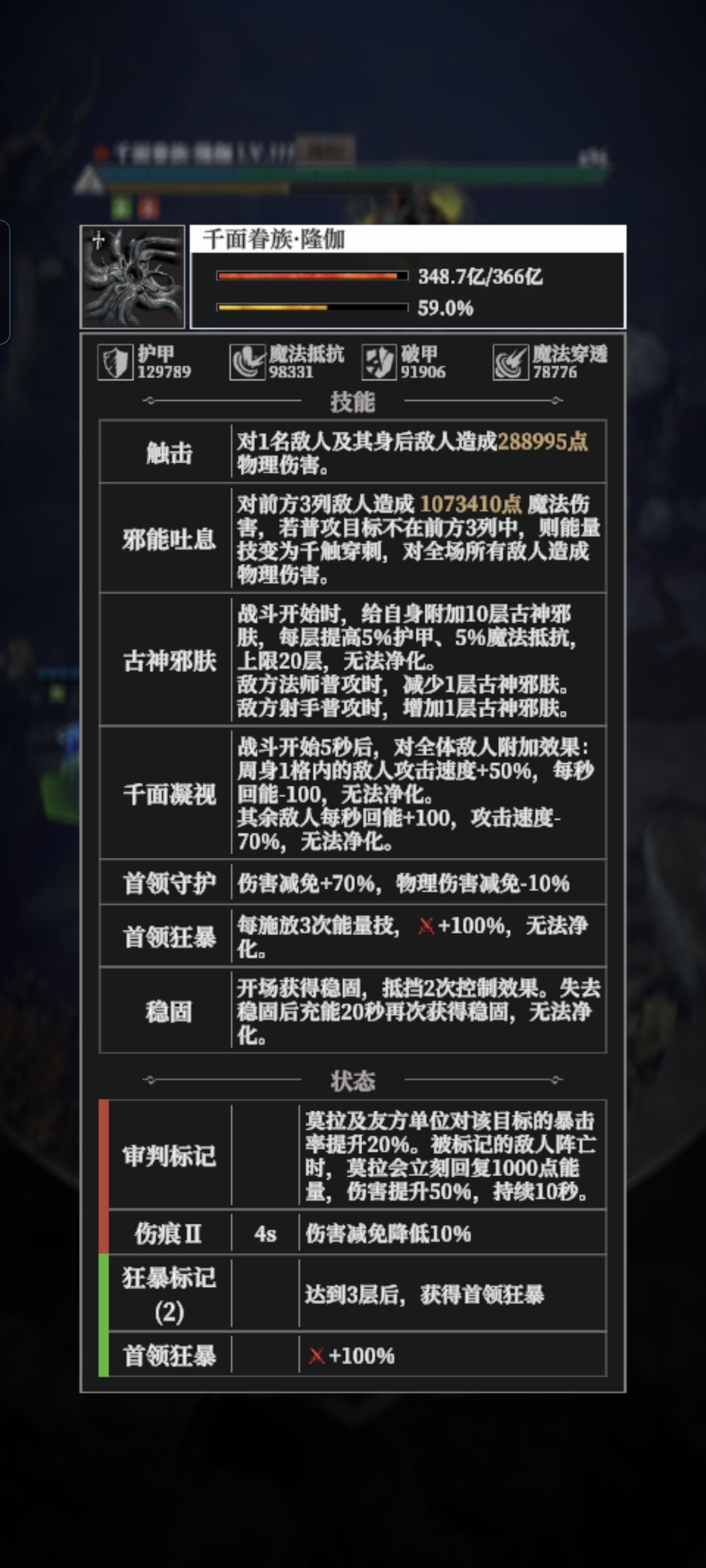 这是灯塔1的裂境数值,将近三倍的伤害,连抗性也是将近翻倍
